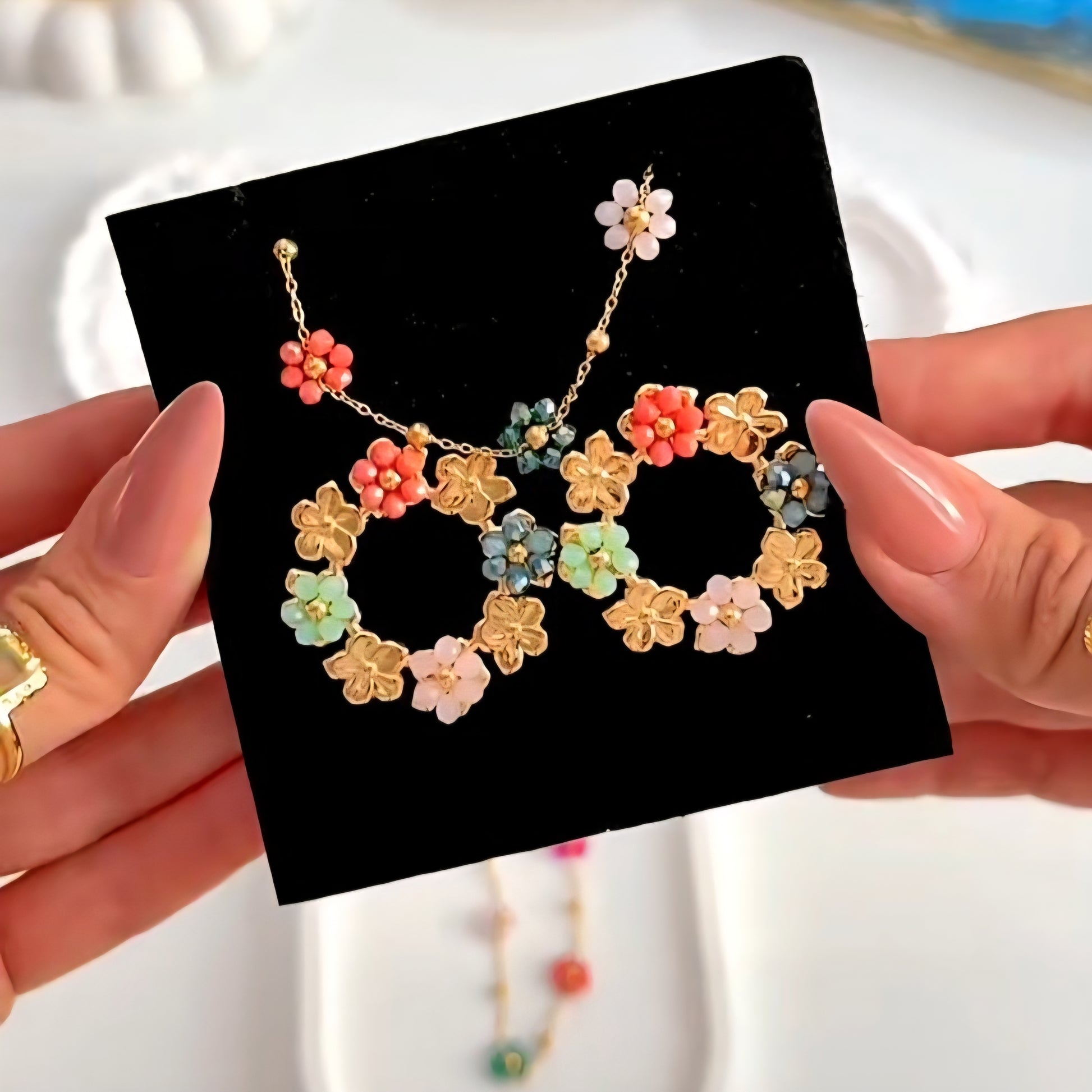 A timeless pairing of nature and elegance — the Flower Studs and the matching Necklace come together in a refined set made for effortless style. Perfect for everyday wear or gifting, this duo adds a touch of golden grace to any look.