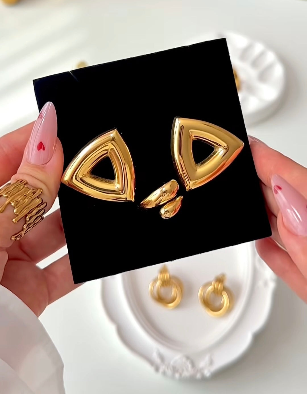 Esmeralda Set – A chic pairing of statement earrings and a complementary ring, each with its own unique design. Together, they create an effortlessly elegant look that blends modern style with timeless charm.