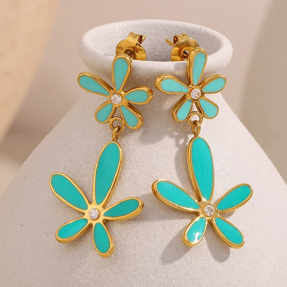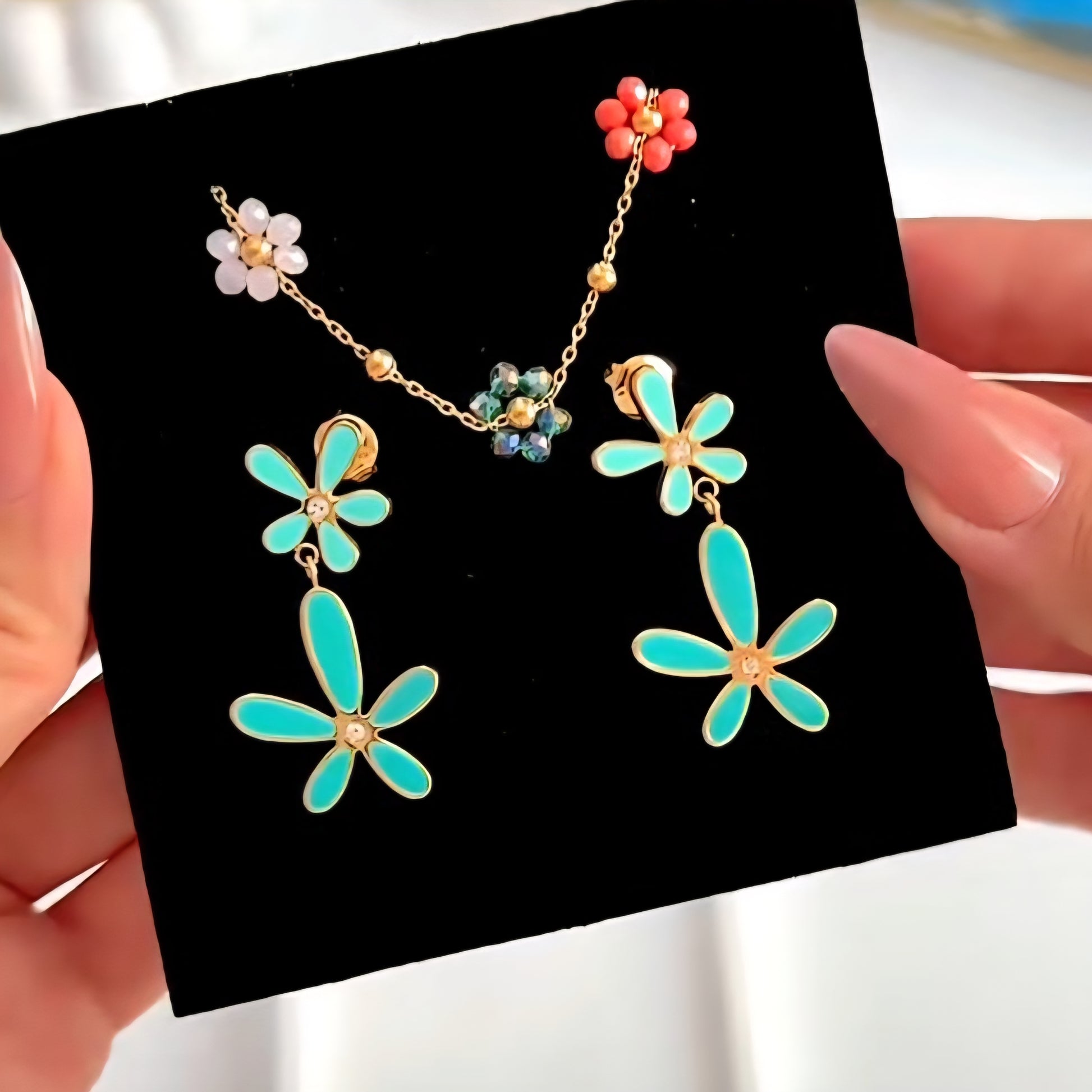 Inspired by nature’s charm, the Fiorina Set pairs graceful flower dangle earrings with a matching floral necklace — a delicate, feminine duo that brings blooming beauty to any outfit.
